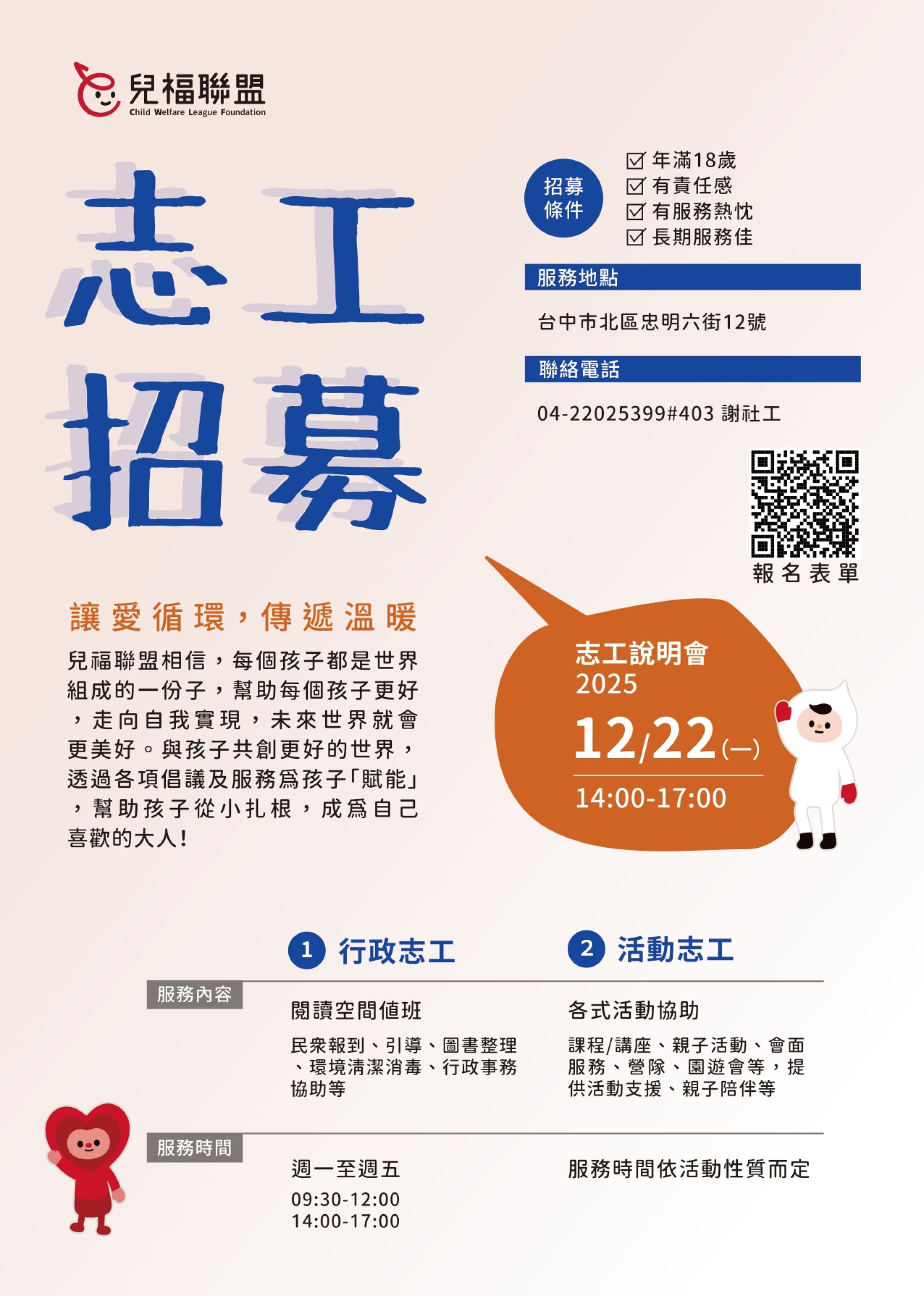 讓愛循環,傳遞溫暖 兒福聯盟志工招募