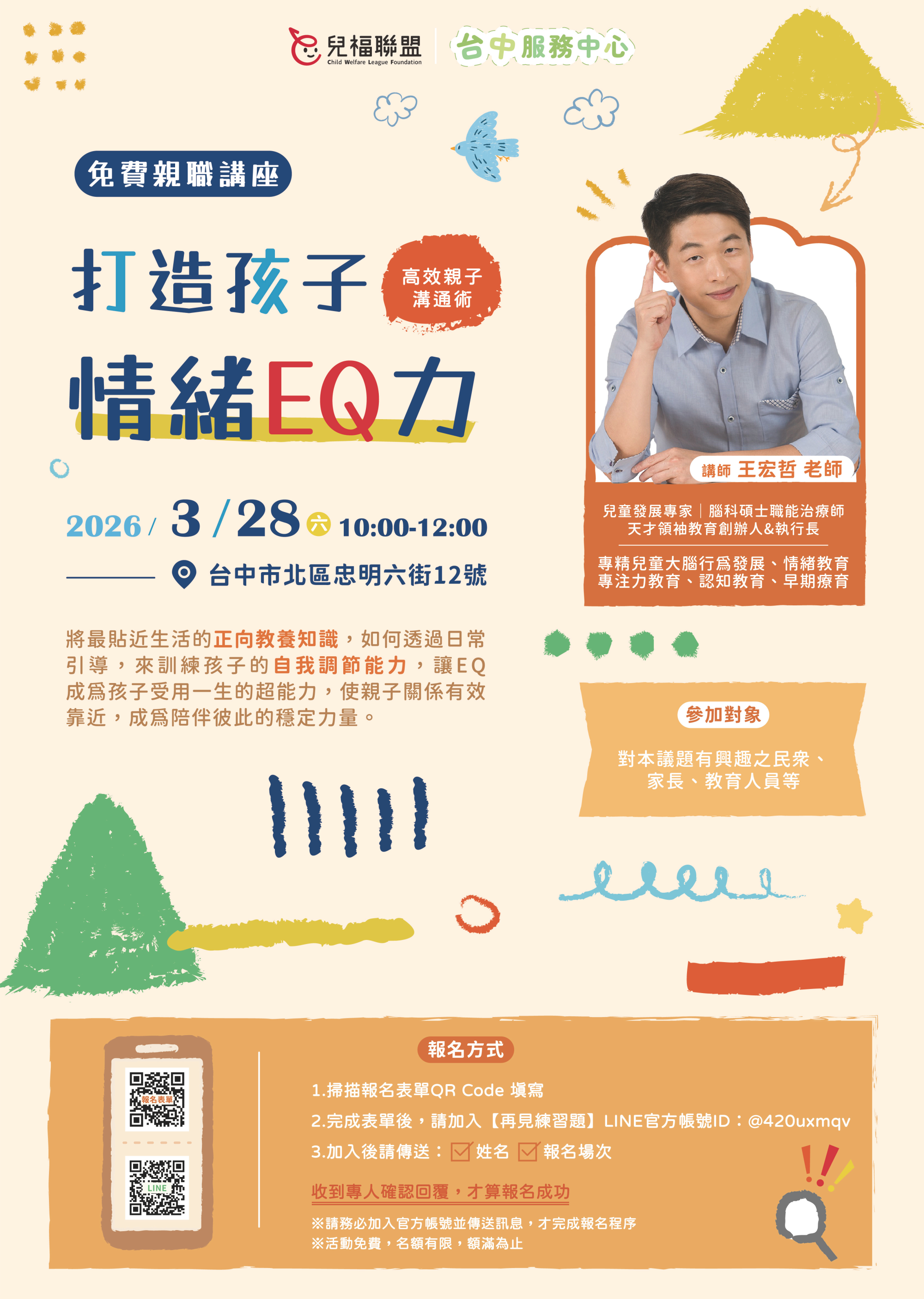 兒福聯盟台中服務中心「打造孩子『情緒EQ力』 高效親子溝通術」親職講座