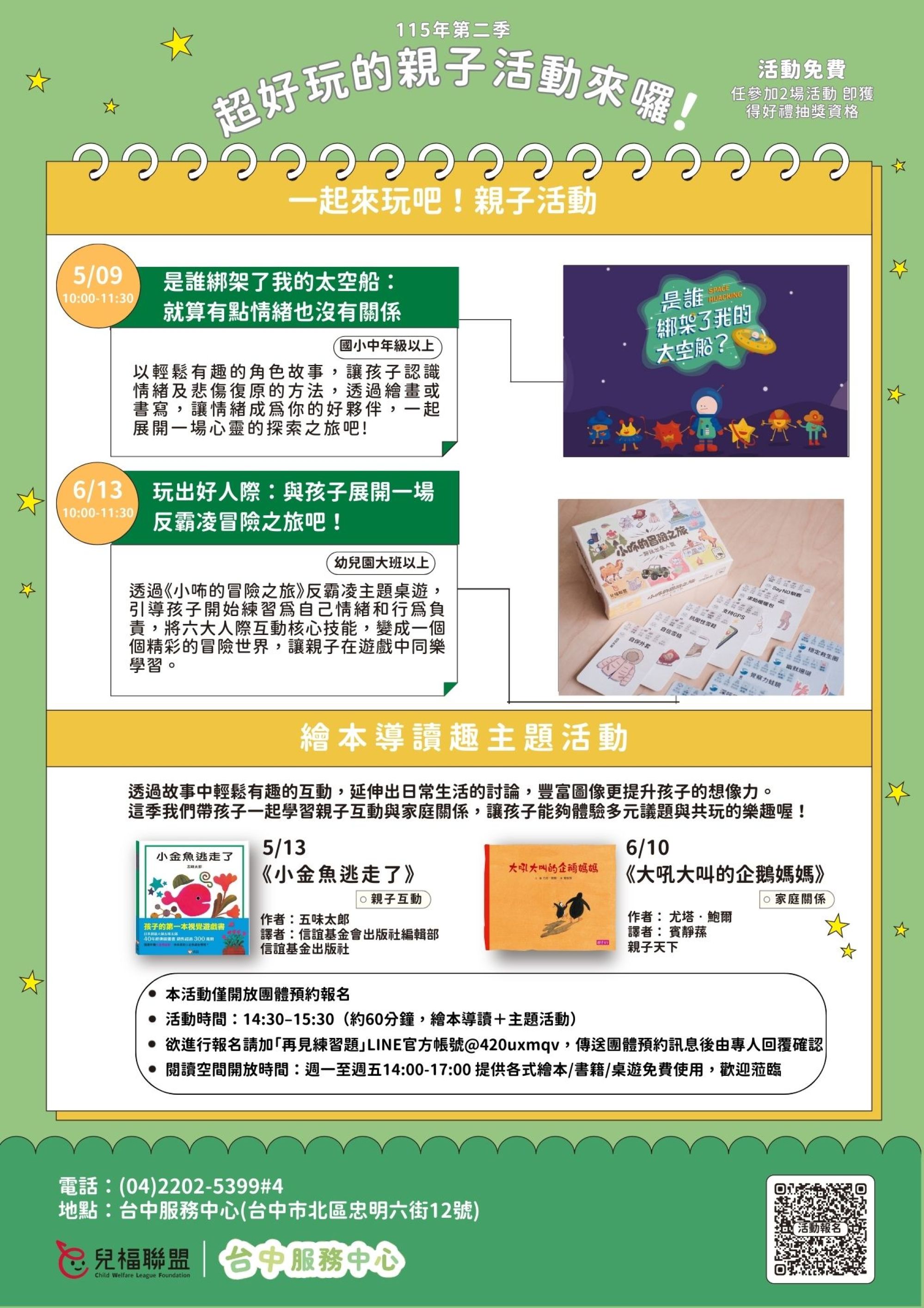 兒福聯盟台中服務中心第二季活動(04-06月)